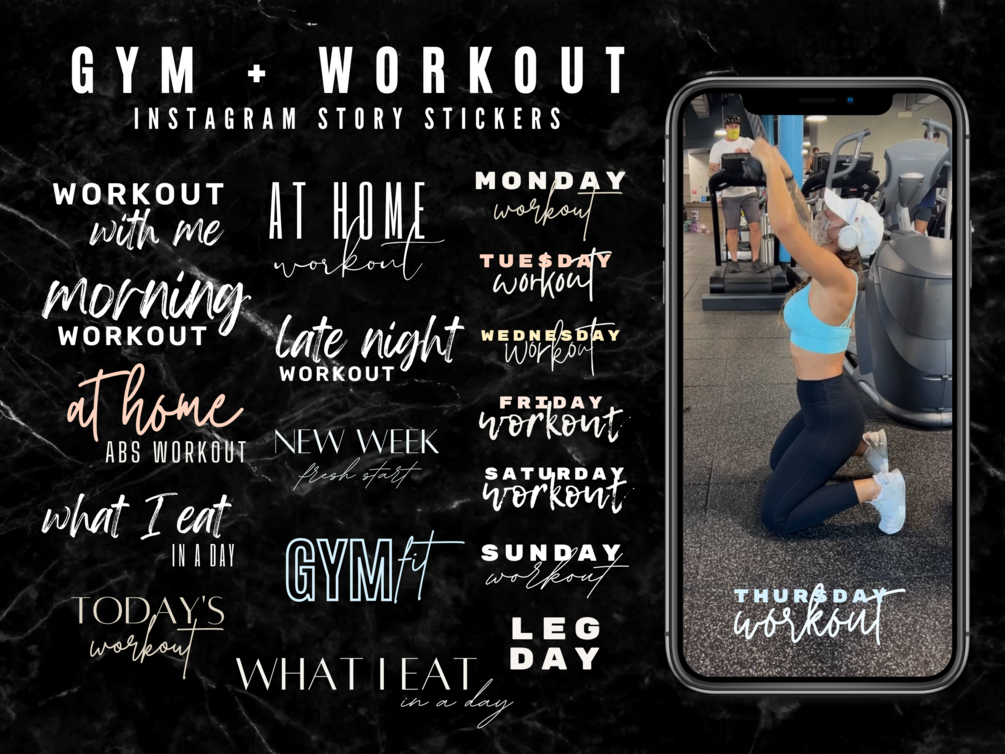 50+ Instagram Story Fitness Workout Gym Stickers | Fitness, Gym Girl, IG Elements, Fitness Words Insta, IG Story, Instant Download, Yoga